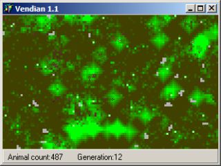 Vendian is one of my a-life projects. The idea is simple: if genetics is our programming code, why not use programming code for genetics of a-life. It makes things so much simpler. My little animals are really just little computer programs running a BASIC like programming language.