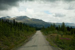 Abzweigung bei km 567 nach Süden. Dieses 66 km lange Stück ist wunderschön. Vorbei an hohen Bergen, Gletscher, viele Wasserfälle und entlang einem reisenden Fluss. Leider hat es geregnet. Unterwegs sahen wir einen Schwarzbären.