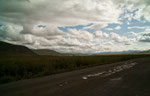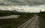 Ab der BC - Grenze ist er geteert und in einem perfekten Zustand. Größer könnte der Kontrast nicht sein. Auch diese Strecke ist uninteressant. Einzige highlights sind die Brücken über die Flüsse „Poplar River“ und vor allem über „Fort Nelson River“. Dieser riesige Fluss wird mittels der weltweiten längsten Behelfsbrücke einspurig, schmal und 430m lang. Im sehr hohen Führerhaus des Volvo sieht man keine Seitenbegrenzung und man scheint zu fliegen - zur Freude der Beifahrerin.