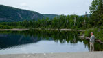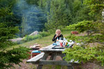 Übernachtet haben wir auf dem Campground. Ein super Platz in Reichweite zum Ufer. Der Platz war auch groß genug um unser neu erstandenes Moskitozelt zu probieren. Der Aufbau des „lapprigen“ Gestänges war etwas defiziel aber nach diesem Erfolg haben wir es sehr genossen das wunderschöne Panorama aus „geschütztem“ Blick zu genießen. Jetzt haben wir sowohl Frühstück als auch Abendessen draussen eingenommen - wunderbar. Wir müssen hier anmerken dass die Moskitos und „black flies“ schon sehr nervig sind.