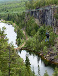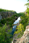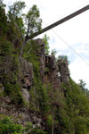 Zeno und Margot Wahl haben uns empfohlen Eagle Creek Canyon zu besuchen.Es ist ein wunderbares Stück Natur nicht weit von Dorion. Harvey Hamel und sein Sohn Jimmy haben den tiefen Canyon (65 m tief) mit zwei Hängebrücken überspannt - die längere ist die längste in Canada. Es gibt eine Rundweg über beide Brücken und dann über 200 Stufen runter in den Canyon. Seit 2009 gibt es auch die längste „zip-line“ in Canada. Man sartet hoch oben am Rand des Canyons (an der großen Hängebrücke) und landet 900 m weiter unten auf dem Grund des Canyons - an einem See. Die Strecke von 900 m wird in 55 sec. überwundet und erreicht eine Spitzengeschwindigkeit von ca. 55 km/h. Das Ganze ist auf jedenfall besuchenswert.