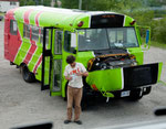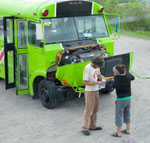 Neben uns haben junge Torontoer Studenten in ihrem wunderbar angemalten ehemaligen Schulbus übernachtet. Sie hatten ein technisches Problem - wollten es in 10 Minuten gelöst haben und standen am nächsten Morgen immer noch da - mit einer kaputten Benzinpumpe.
