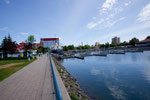 Auf halben Weg - in Vermilion - haben wir nochmals übernachtet. Wir freuten uns einen wunderschönen Platz an der neuen Marina gefunden zu haben. Leider war es nur vielleicht 100m von der Trans - Kanadischen - Eisenbahnlinie entfernt. Und genau hier war ein unbeschrankter Übergang. Die Güterzüge (und nur die fahren) sind viele Kilometer lang und haben mehrere riesige Diesel - Lokomotiven. Machen eine irren Krach. Und hinzu kommt dass sie vor unbeschrankten Übergängen ihre Sirenen einschalten. Der Effekt: auch ein toter Elch hört dies und wir standen so ungefähr 5x in der Nacht senkrecht.