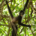 Danach zeigte uns Daniel bei einer 2-stündigen Dschungel Tour die Flora und Fauna des geschützten Gebiets „Monumento Natural Yaxchilan“. Er kennt jede Vogelstimme, hat Augen wie ein Luchs und wir konnten sowohl „Klammeraffen“ als auch „Brüllaffen“ sowie einige bunte Vögel sehen - unter anderem einen wunderschönenTukan. Leider waren die Lichtverhältnisse im Dschungel so schwierig dass nicht immer die Fotos gelungen sind