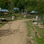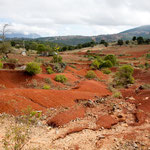 Von Santiago Apoala nahmen wir eine andere Route zurück nach Nochixtlan. Ebenfalls eine schmale Dreckstrasse aber durch wunderbare Landschaft. Durch viele Dörfer und vorbei an „Tierra Colorada“ = rote Erde. Und wirklich leuchtet überall die rote Erde.