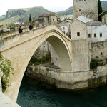 Besonderes: Mostar ist eine wunderschöne Stadt wo sich Occident und Orient seit Jahrhunderten getroffen und auch gemischt hat Die Muslims hier sind sekulär. Die Mehrheit der Bevölkerung sind bosnische Muslims („Bosniaken“) ein Teil sind Kroaten (Katholiken) und der andere Teil Serben (Orthodoxe Christen). Über viele Jahrhunderte hat das Zusammenleben funktioniert. Leider wurden dann zwischen 1990 und 1992 nationale Interessen (und leider auch religiöse) genutzt um Grenzen neu zu etablieren. In Mostar sind die drei Religionen mit voller Wucht aufeinander geprallt. Es wurden alte Kulturschätze sinnlos zerstört und es wurden Menschen vertrieben.