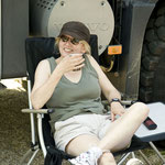 Der Gute hatte etwas Schierigkeiten einen Platz zu finden und stellte sich letztendlich genau vor den „Ausguck“ zweier älteren Damen (vielleicht beide um die 80?). Das Actrospaar besitzt auch noch 2 riesige deutsche Doggen (fast so groß wie das Womo!!). Kaum stand das „Monster“ kamen die beiden „Kälber“ raus und markierten ihr Gebiet (genau vor dem Wohnwagen-Terrain der beiden Damen) und schon ging das Gezetere los. Die Platzbetreuerin wurde eingeschaltet. Beide Parteien versuchten andere Campingplatzbewohner für ihren Standpunkt zu gewinnen (Plenarsaal Campingplatz). Auch wir wurden angesprochen (zuerst von den Ladies unter dem Label „Angst vor wilden Kälbern“ und dann vom „Dickschiff / Doggenkönig“ mit dem Versuch einen „Kleinschiff-Verbündeten“ zu gewinnen). Tunlichst halten wir uns aus „Inner-Österreichischen“ Angelegenheiten raus.