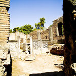 Auf dem Gelände sind anschauliche Tafeln mit Rekonstruktionszeichnungen und Erklärungen der ehemaligen Gebäude aufgestellt. Ansonsten würde unsere Phantasie kaum ausreichen, sich unter den herumliegenden Steinen und Säulenfragmenten auch nur annähernd etwas bildhaftes vorzustellen.