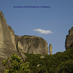 Die einzigartige Szenerie der stalagmitförmigen, dunklen, über 600 Meter in den Himmel ragenden Felsen hat uns zutiefst beeindruckt. Diese riesigen, bizarren Steinnadeln, steil aufsteigend am Rand der thessalischen Tiefebene, ist in der Tat unvergesslich. Mit Sicherheit gehören sie zu den schönsten Landschaften Europas.
