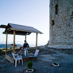 Im Norden das „wilde Camp“. Hier trafen wir Menschen aus ganz Europa die auf unserer Wellenlänge waren. Viele hatten ein Motorrad oder Roller dabei und erkundeten die Umgebung. In der Nachbarschaft eine einfache aber gute „Kantina“ (Taverne). Alles moderne Zigeuner.