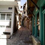 und erinnert eher an ein Schweizer Dorf als an Griechenland. Wir haben uns auf engsten Strässchen bis zum Zentrum durch gekämpft - mitunter mit bösen Blicken bedacht über unser „Ungetüm“ um dann