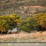 Elea wurde uns empfohlen weil es hier direkt am Strand freie Stellmöglichkeiten geben sollte. Direkt in einem Pinienwald. Wir fanden ihn und ergatterten einen ruhigen schönen Schattenplatz.