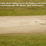Unter gleissender Sonne, bei 35 Grad, rannten mit dem olympischen Geist infizierte, den 192 m langen Parkcour. Im Schatten sitzend, ohne jeglichen sportlichen Ehrgeiz, sahen wir diesem lustigen Treiben zu. Schließen Wetten ab, wer das Rennen macht. Flip-Flops gegen rosa Stöckelschuhe. ( siehe Bild ) Besser wie Kino!!