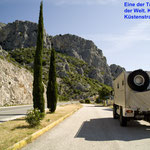 Für die Fahrt von den Roski Slap nach Knin wählten wir eine lokale (direkte) Strasse durch den „Busch“ - im wahrsten Sinne des Wortes. Eine ungeteerte Sand- /Steinstrasse. Rita hat diese Strasse genutzt und ist die meiste Zeit gefahren - vollste Konzentration war angesagt weil Strasse und Fahrzeug gleich breit wahren.