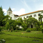 Mönche pflegen die herrlichen, blühende Gärten mit freilaufenden Pfauen und sonstigen Gefiederten.