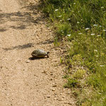 Wir sahen auf dem Weg eine große, eine kleine Schlange und eine Schildkröte.