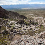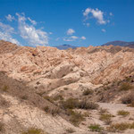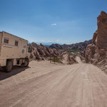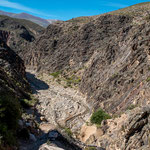 Warum das Tal und die Gebirgskette „Valle Fertil“ heißt ist uns schleierhaft. Es gibt hier hauptsächlich Büsche und im Sommer eine gnadenlose Hitze. Die Bergformationen sind sehr schön. Extrem durchfurcht. Wir hatten uns gewundert weil alles grün war. Der Grund waren die außergewöhnlich starken Unwetter vor einer Woche. Wir sahen bei den vielen „Furten“ die Überschwemmungen.