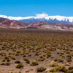 Wir entschieden uns für die kleine Strasse RP149 Barreal und Calingasta nach San Juan. Immer entlang der 6.000er Kette im Westen und der 4.000er Kette (Sierra de Tontal) im Osten. Ein traumhaft schöner Anblick mit diesen schneebedeckten Gipfeln über der trockenen Wüste.