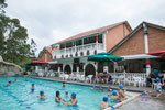 Mit dem Mobil muss man vor dem Campground auf dem Parkplatz stehen. Dieser ist ganz in der Nähe der viel befahrenen Strasse Bogota - Medellin und entsprechend laut. Die sanitären Einrichtungen lassen sehr zu wünschen übrig. Das Ganze ist mit 50.000.-COP für 2 Personen und 2 Tage total überteuert.