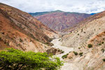 Der Rio Colca hat in Jahrmillionen eine bis zu 3400 m tiefe Schlucht gegraben, die doppelt so tief als der Grand Canyon ist - aber bei weitem nicht so spektakulär. Er zieht sich über 100 km westwärts und der Eingang dieses Tal ist eine der wichtigsten landwirtschaftlichen Anbaugebiete ganz Perus. Seit Jahrhunderten werden an den terrassierten Berghängen Mais, Bohnen, Kartoffeln, Obst und Gemüsesorten angebaut. Die künstlichen Bewässerungsanlagen wurden schon lange vor den Inkas angelegt. Bis in den 70gern lebten hier die Menschen völlig abgeschieden. Leider war die Landschaft bei unserem Besuch etwas trostlos braun. Nach der Regenzeit zieht sich ein grüner Teppich über das Tal.