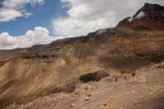 Jualiaca ist die dreckigste und schäbigste Stadt ganz Südamerikas die wir gesehen haben. Die Strecke von Canashuas bis Chivay (Colca) ist wunderschöne und führt über eine Pass von 4.900m. Sie ist geteert aber der Asphalt in einem schlechten Zustand. Ab Chivay entlang des Canyons bis zum Mirador „Cruz del Condor“ nur noch Schotterstrasse aber spektakuläre Landschaft.