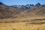 Bis Santa Lucia nahmen wir die geteerte PE-34A. Sie führt wunderschön durch dien Anden und nachdem wir den Pass (4.300m) überquert hatten ging es auf der Hochebene entlang mit traumhafter Weitsicht. In Santa Lucia bogen wir rechts ab zur Laguna Saracocha. Leider war diese Strasse extrem schmal und schlecht dafür die Landschaft umso schöner. Richtung Puno ging es dann teilweise durch steilere Berge. Die Strasse durchwegs einspurig und Schotter. In einer engen Kurve kam uns ein Pick-Up entgegen. Wir standen längst als er immer noch mit blockierten Rädern auf uns zu schlitterte. Einen halben Meter vor unserer Stossstange kam er zum Glück zum Stehen. Er erstes machte er uns Vorwürfe wir hätten nicht gehupt. Aber für ihn galt dies nicht und auch langsames fahren nicht. Aber so sind sie halt die südamerikanischen Machos.