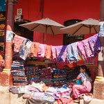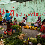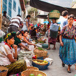 Am nächsten Morgen war großer Wochenmarkt in der Stadt. Bereits um 2 Uhr morgens kamen die Lieferwagen und parkten direkt neben uns ihre Waren aus. Meist Frauen der umliegenden Maya-Dörfer, in ihren farbenprächtigen Trachten, verkaufen hier ihre Waren. Wir waren die einzigen Touristen weit und breit und wurden somit genauso bestaunt wie umgekehrt. Es ist immer wieder ein Genuss diesem bunte Treiben zuzuschauen. Fotografiert haben wir nur versteckt aus der Hüfte.